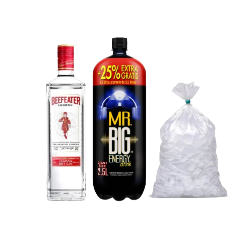 Gin Beefeater 1L + Mr big 2,5 L + hielo 1k
